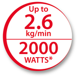 عملکرد نهایی حداکثری تا 2.6 کیلوگرم در دقیقه به لطف موتور قوی 2000 وات. نتایج کارآمد و سریع